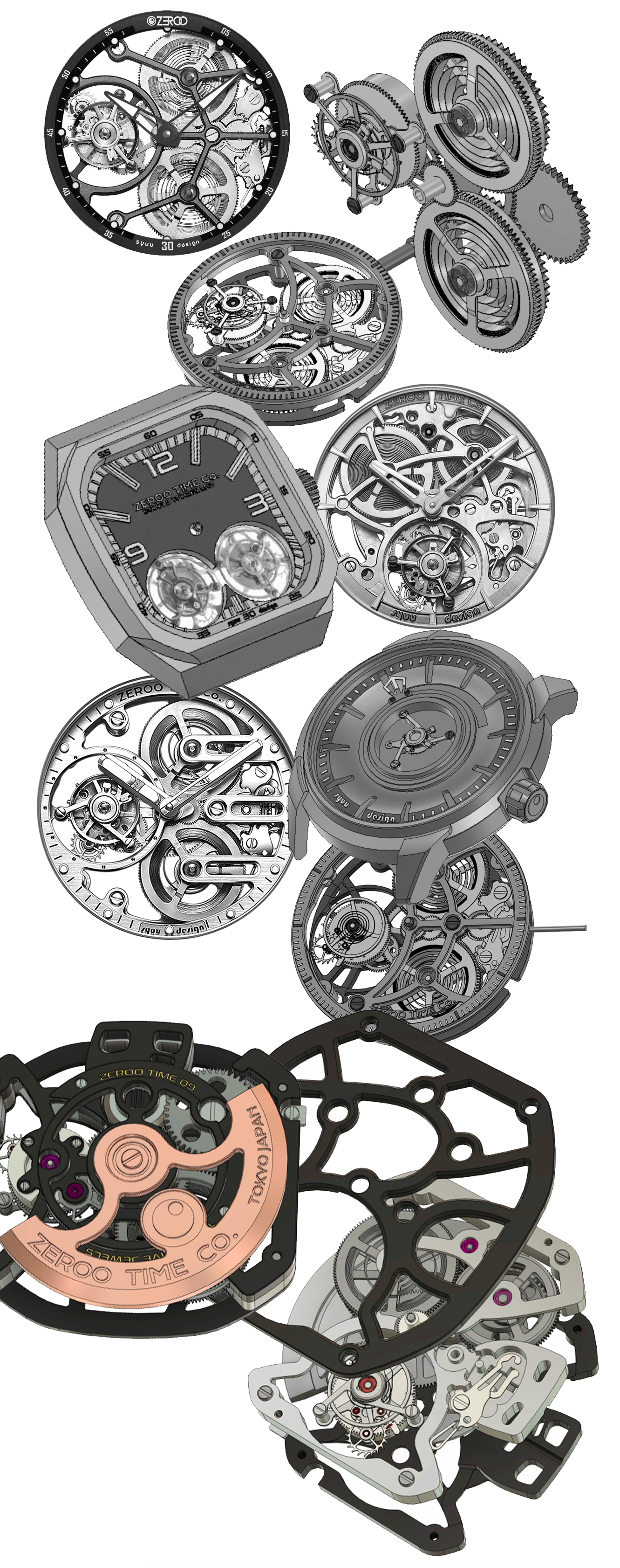 ゼロタイムは企画デザイン開発から始まり、組み立て、検査点検、品質維持、修理調整の全てを東京のオフィスと工房で行なっています。我々が考案したものをパーツ工場へオーダーし、集まったコンポーネンツを自社アトリエで組み立てることで間接コストを圧縮することに成功しました。