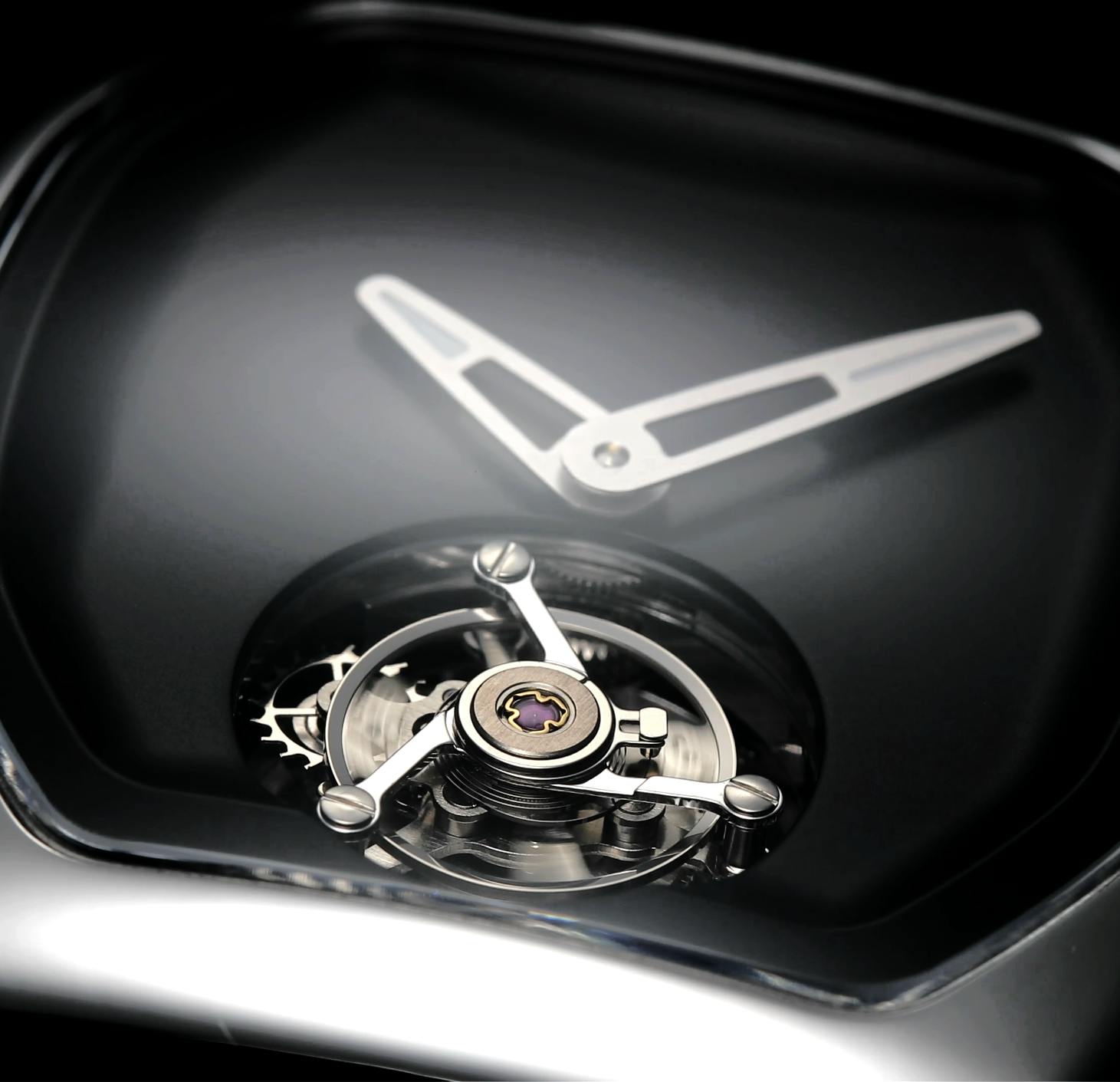 T9は、トゥールビヨン・ムーブメントの美しいキャリッジをじっくり味わえるよう、文字盤をくり抜いた伝統的なスタイルを現代的に再構築しました。キャリッジの美しさに焦点を当てた、ミニマルでありながらエレガントなデザインに仕上げています。