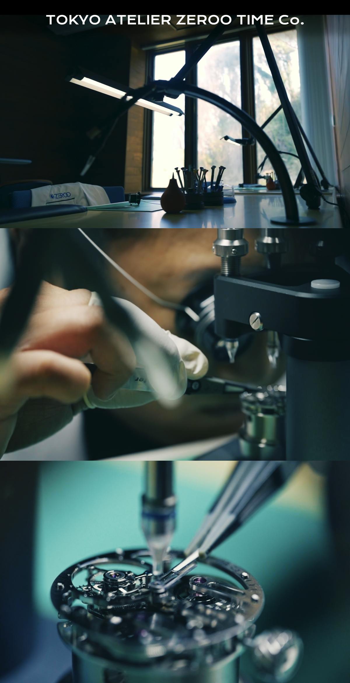 ネジの締め具合ひとつで精度に影響が出る世界は非常に奥深く、相当数多くの組み立て経験をすることでのみ蓄積される経験則がものを云うまさに職人の仕業からZEROOのトゥールビヨンは生み出されています。