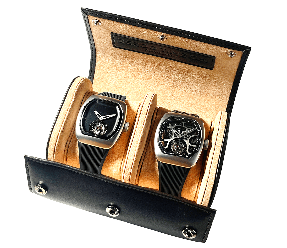 T9 & T9-01の2本セットをお申し込みの方へZEROOオリジナル腕時計2本用トラベルウォッチボックスをお付けします。