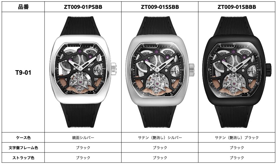 最新モデルT9 &T9-01はこれまでのZEROOトゥールビヨンシリーズが持っていた個性をより洗練させた特徴を備えています。
