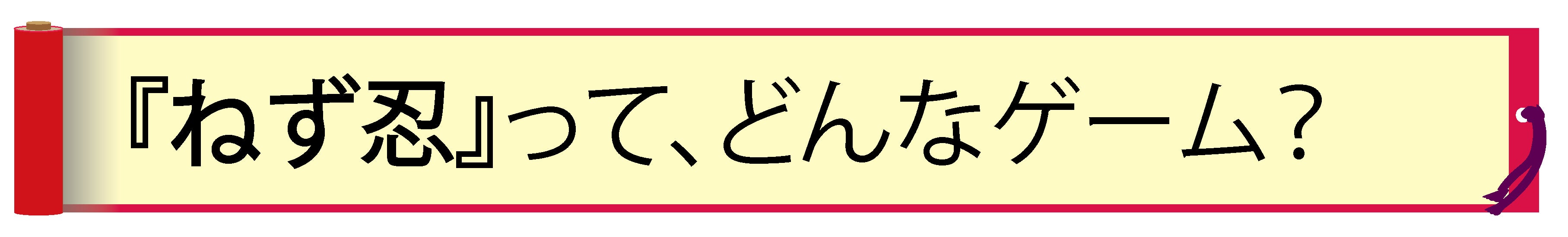 『ねず忍(にん)』は、誰でも知っている『迷路』に『忍術』を掛け合わせた、新感覚のボードゲームです。ルールは簡単ながら、ゲームならではの仕掛けがあり、子どもから大人まで楽しむことができます。また、対戦モードと一人モードがあります。さらに、カードには文字がなく、色の区別も必要ない、ユニバーサルデザインなゲームを目指しました。