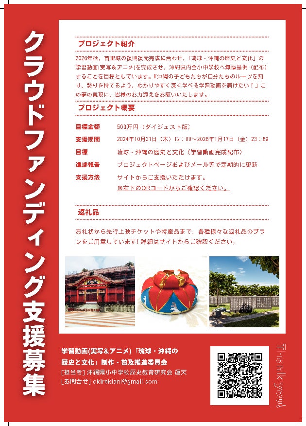 「琉球・沖縄の誇りを次世代へ!」プロジェクトのクラウドファンディングは、現在第一目標の61%(1,837,000円)に到達し、95名の皆さまから温かいご支援をいただいております。