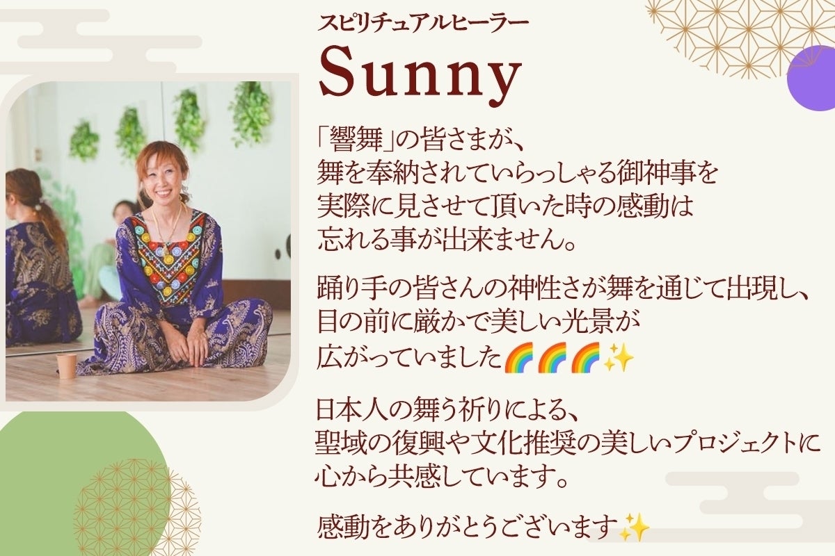その響舞を通して日本文化(日本の和の心)が広がり繋がれていき、皆さま一人一人の心が平和と幸せで満ちることを願っています。