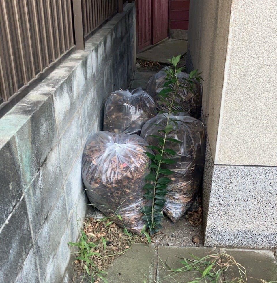 今日は草むしり、落ち葉や葉っぱなどを掃除して綺麗さっぱりに。