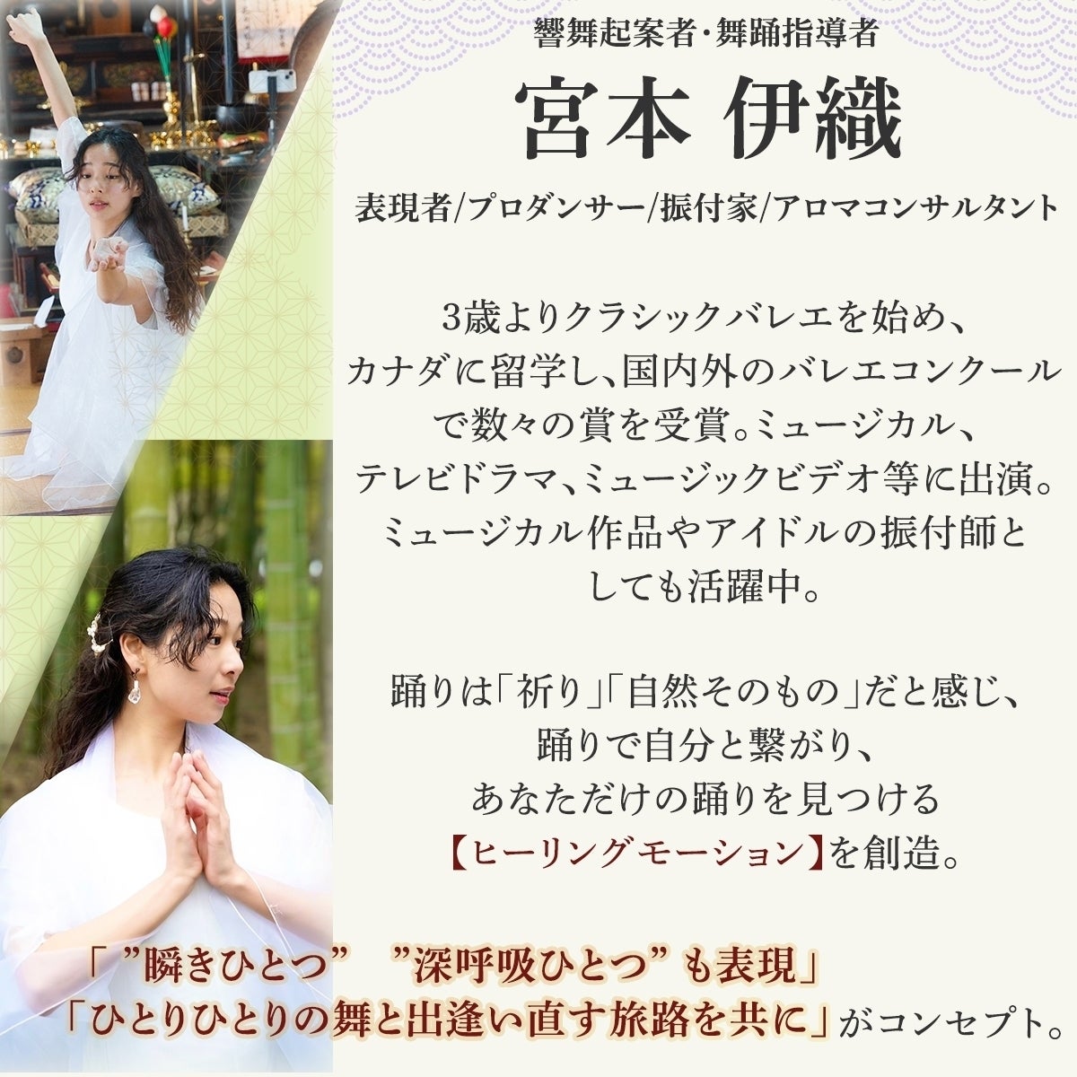 ひとりひとりのいのちの舞いを探究し、神社仏閣に舞いを奉納する活動をしています。