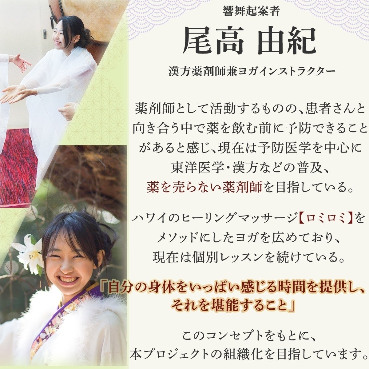 その響舞を通して日本文化(日本の和の心)が広がり繋がれていき、皆さま一人一人の心が平和と幸せで満ちることを願っています。