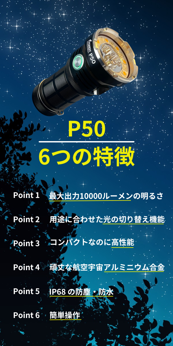 未体験の明るさと超高性能LEDパワーライト「P50」誕生!