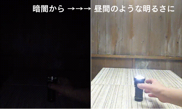 暗闇を一瞬で昼間のように明るく照らします。実際の明るさを体感してください!