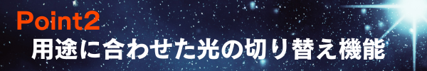 で用途に合わせて近くのものから遠くのものまで、明るく照らします。