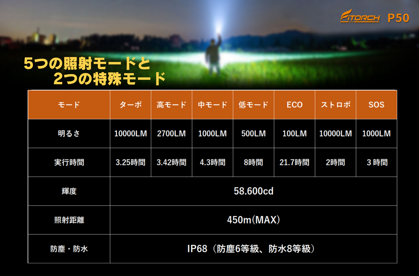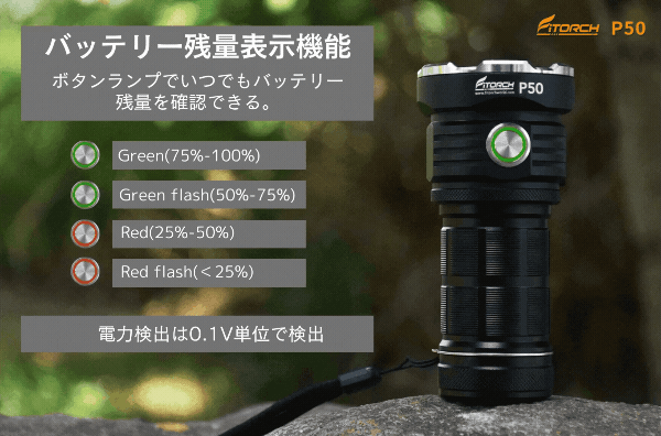この度は「FiTORCH P50」の懐中電灯にご興味頂きありがとうございます。