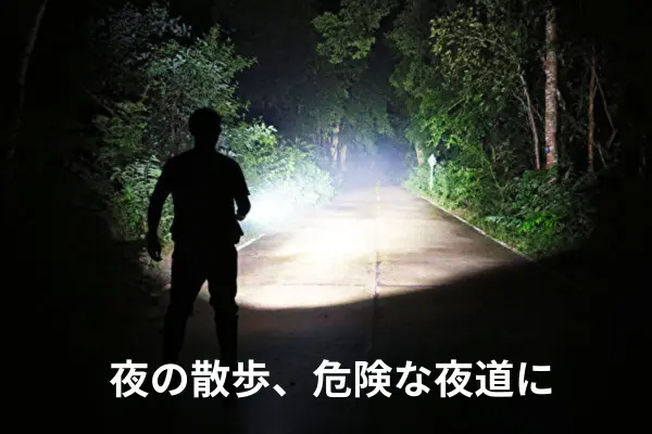 真っ暗な夜道も足元から明るく広角に照らします