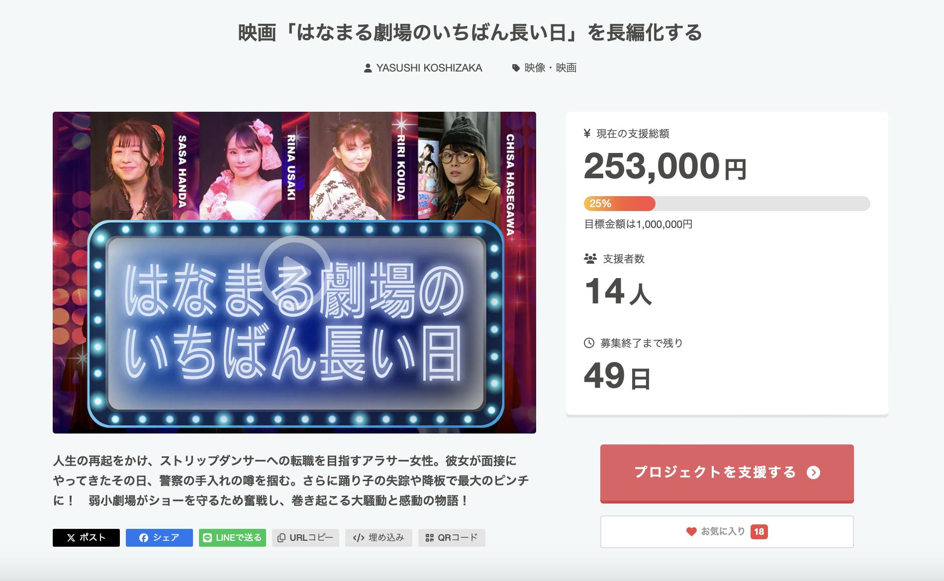 長編化プロジェクトスタートから2週間が経過。すでに253,000円達成!となりました。