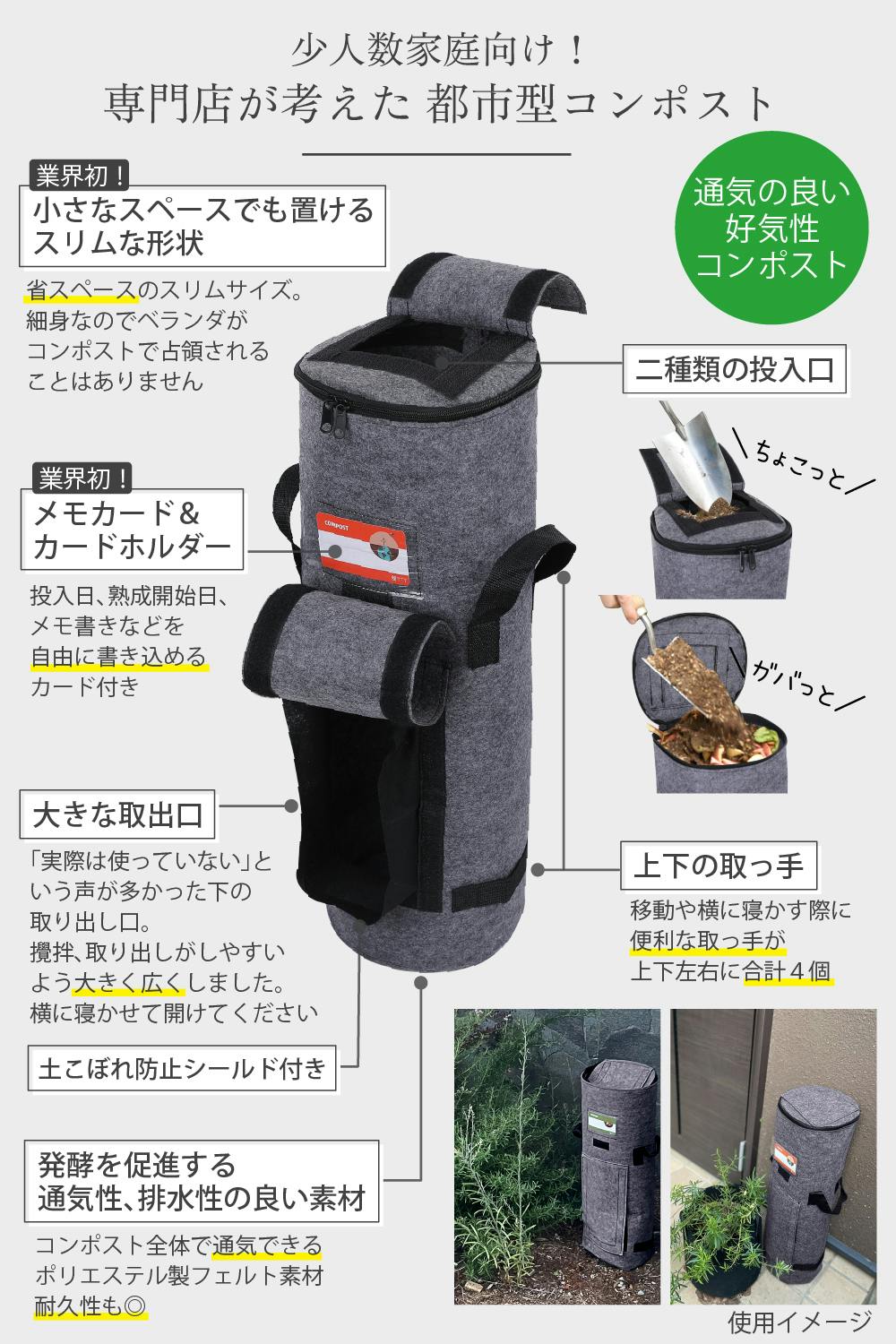 始めたいけど、ベランダがコンポストで埋め尽くされるのはちょっと…「場所がない」を理由にしていた方、都市型の細身なコンポスト容器 "コンポスリム" をお試しください。
