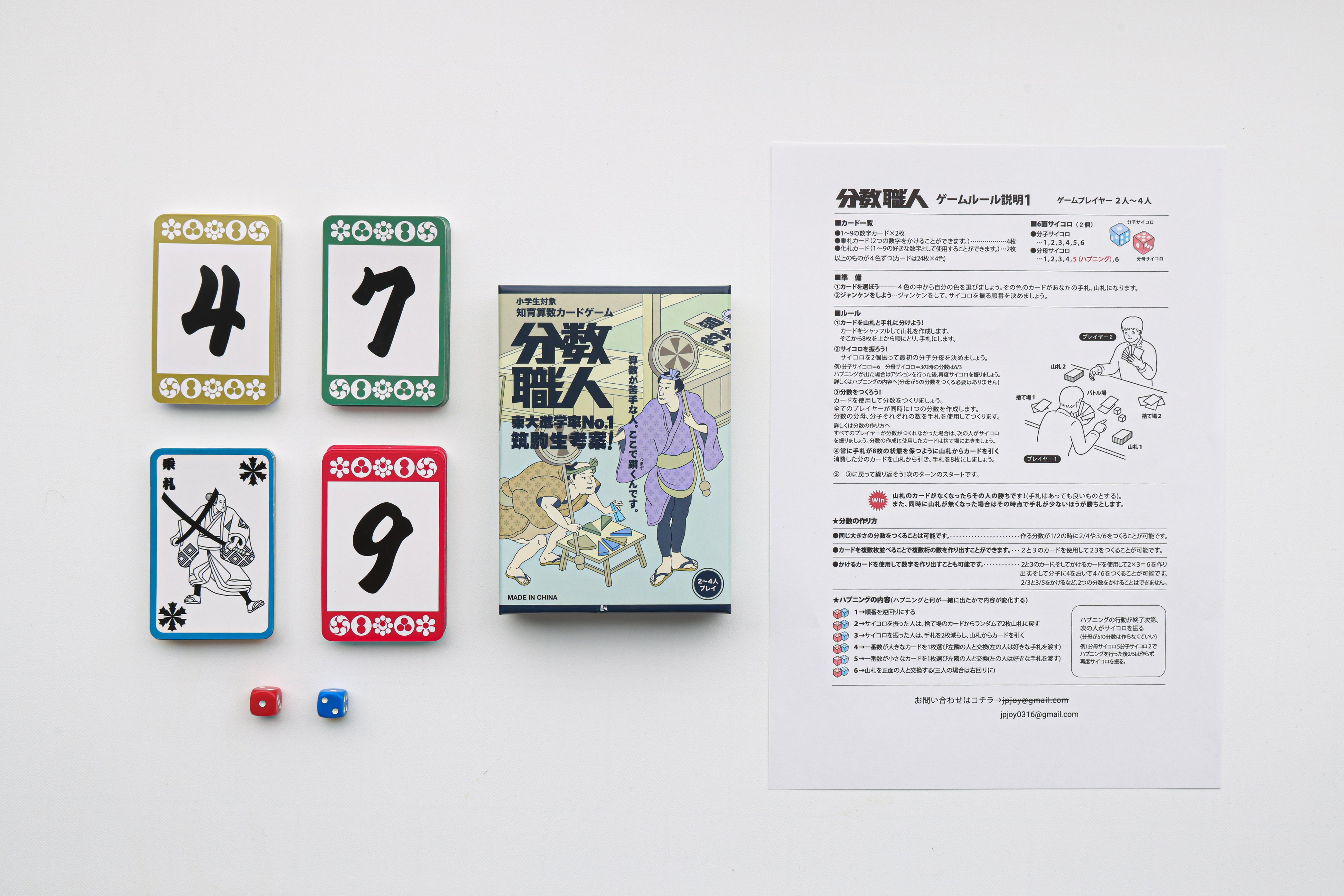 分数職人はそんなカードゲームです。 分数職人をプレイすることでお子様の算数に対する苦手意識の改善、親御様は勉強しなさいという必要ももうありません。分数職人はシンプル、そしてさらに無限の創作性があるカードゲームです。飽きることはありません。 ”お子様の算数アレルギーをなくす”をモットーに中学受験経験者が本気で開発した知育カードゲームです。