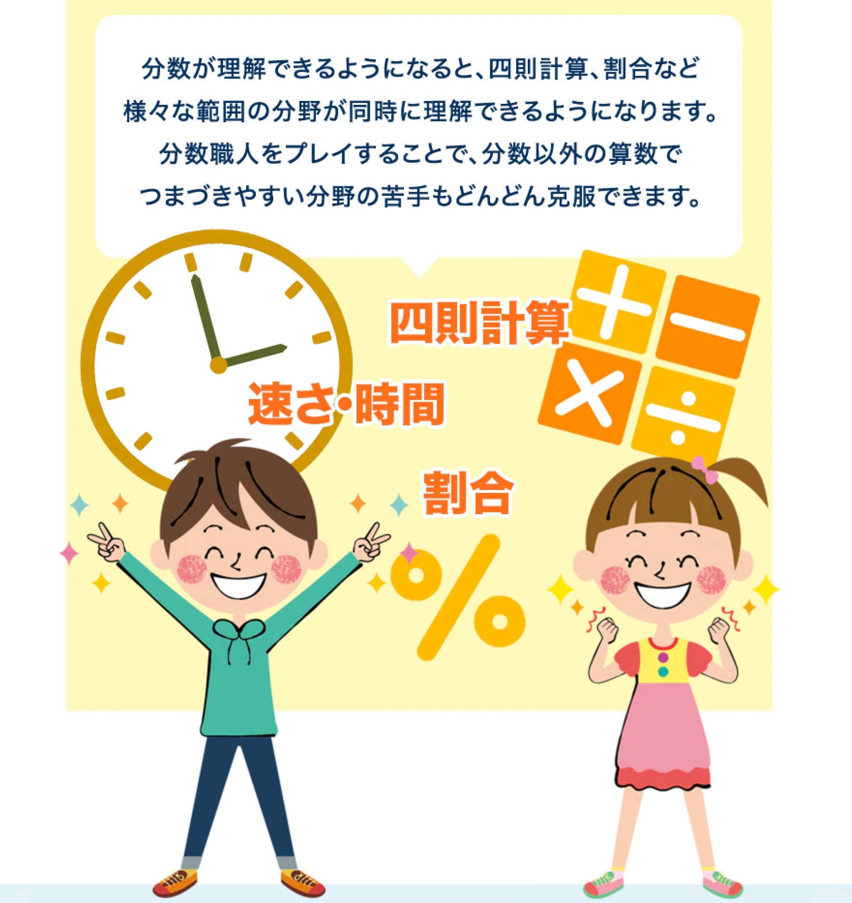 分数職人には難しい公式はありません。子供の発想力を存分に生かして、楽しみながら算数をより身近に感じていただけます、