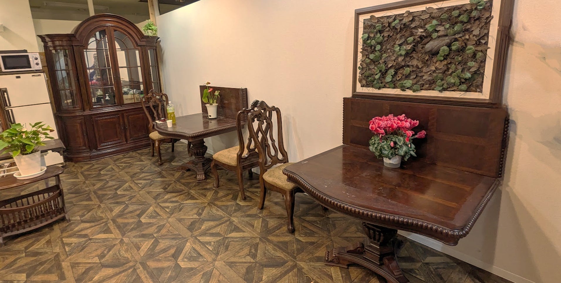 ここをカフェを模した空間へと仕上げるために、机も用意しています。