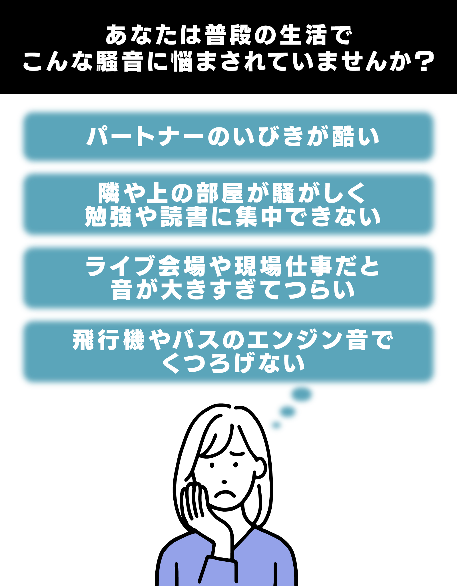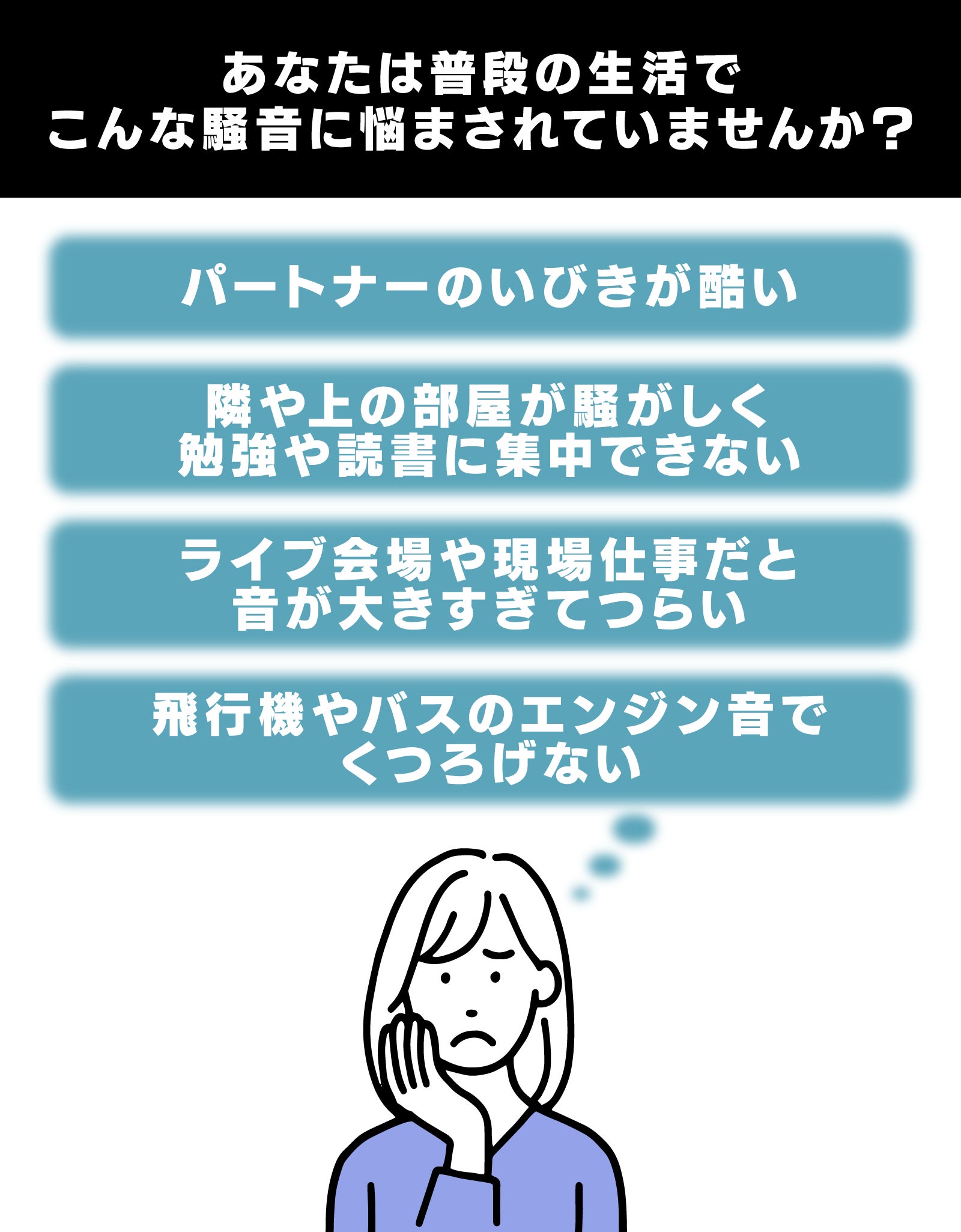 睡眠時も社会生活をする上でも、耳障りな騒音や雑音は付きもの。