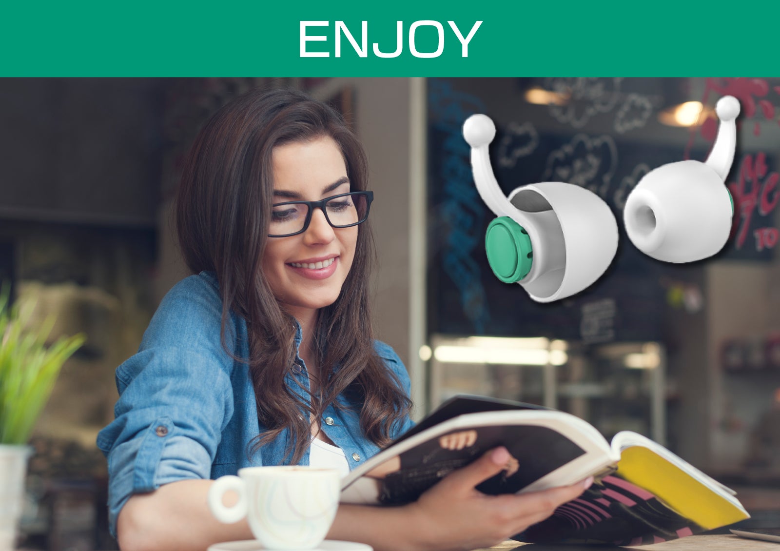 従来の耳栓と異なり、周囲の環境音は低減しつつ、人との会話などの音声はしっかり聞き取れる画期的な耳栓です。