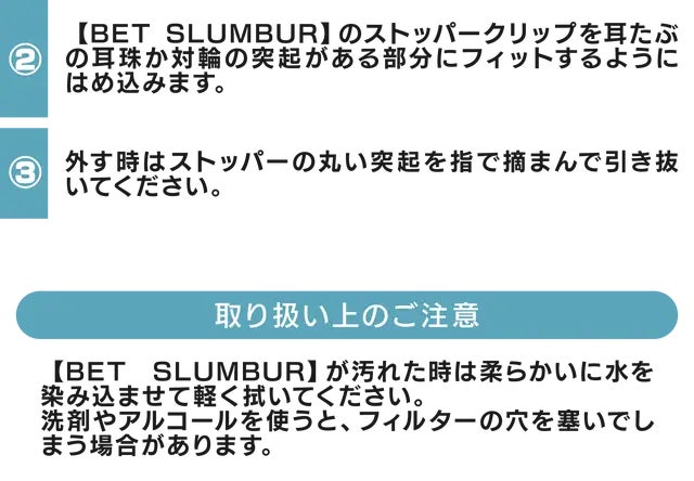 【BET SLUMBUR】は耳たぶに挟めるストッパー付き。寝返りはもちろん、ジョギングやヨガなど体を大きく動かす運動でも耳から外れる心配はありません。