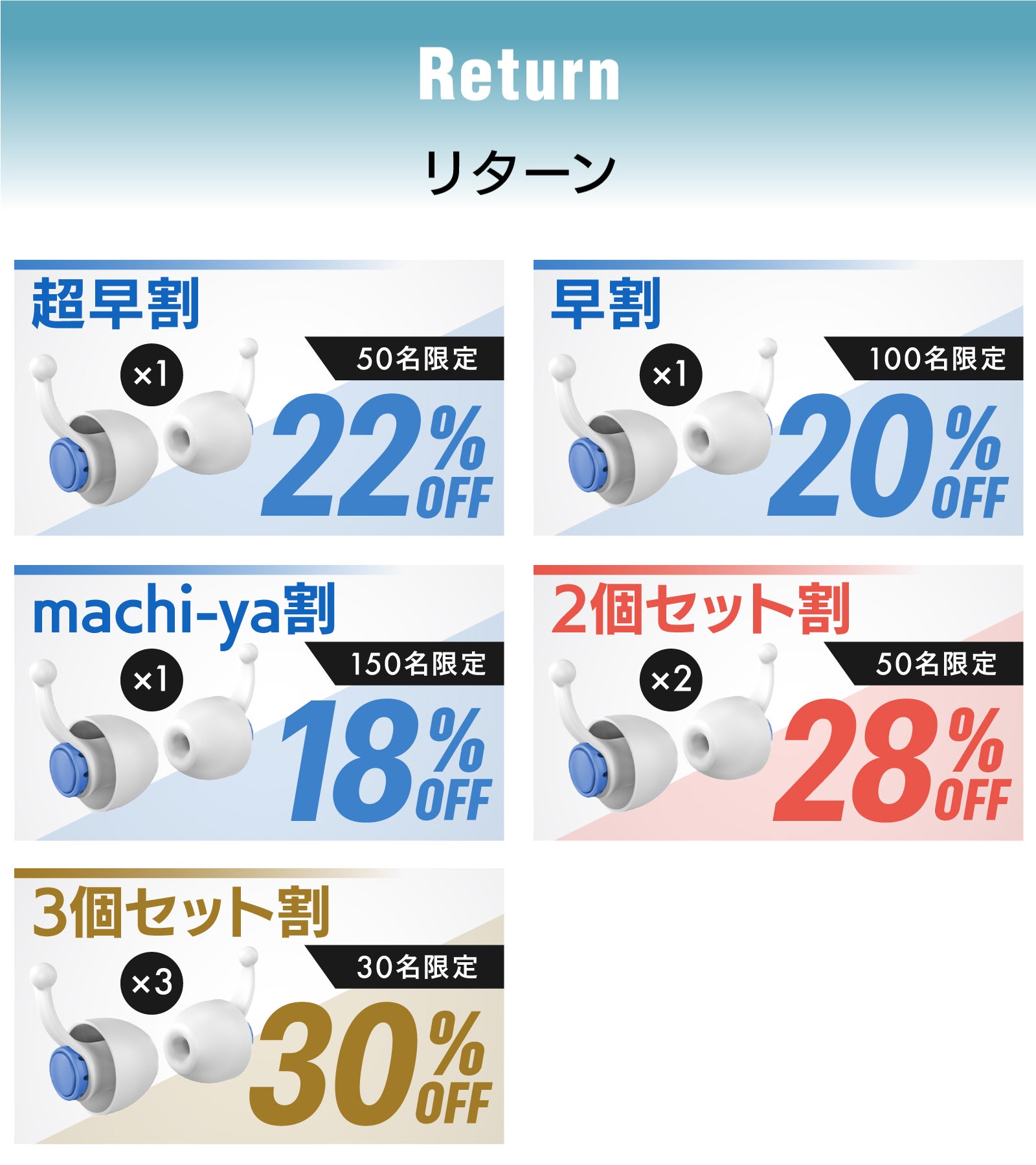 それは私たちの日常を「より快適に」「より豊かに」してくれるモノです。そうした製品を皆様にお届けし、少しでも早く「未来の価値」を体感していただけることを願っております。今回のリターン内容はイヤープラグです。