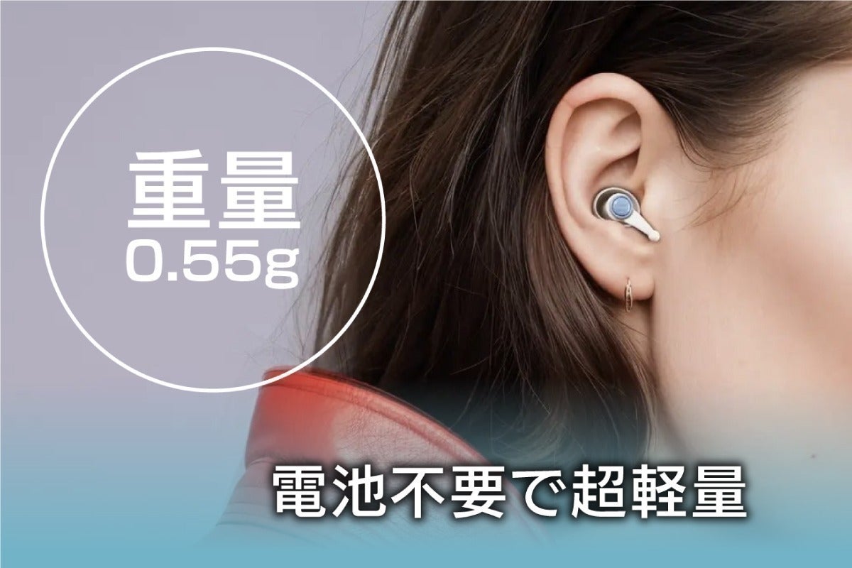 1円玉の半分程度の重さしかありません。そのため耳に付けていることを忘れるほど自然体。