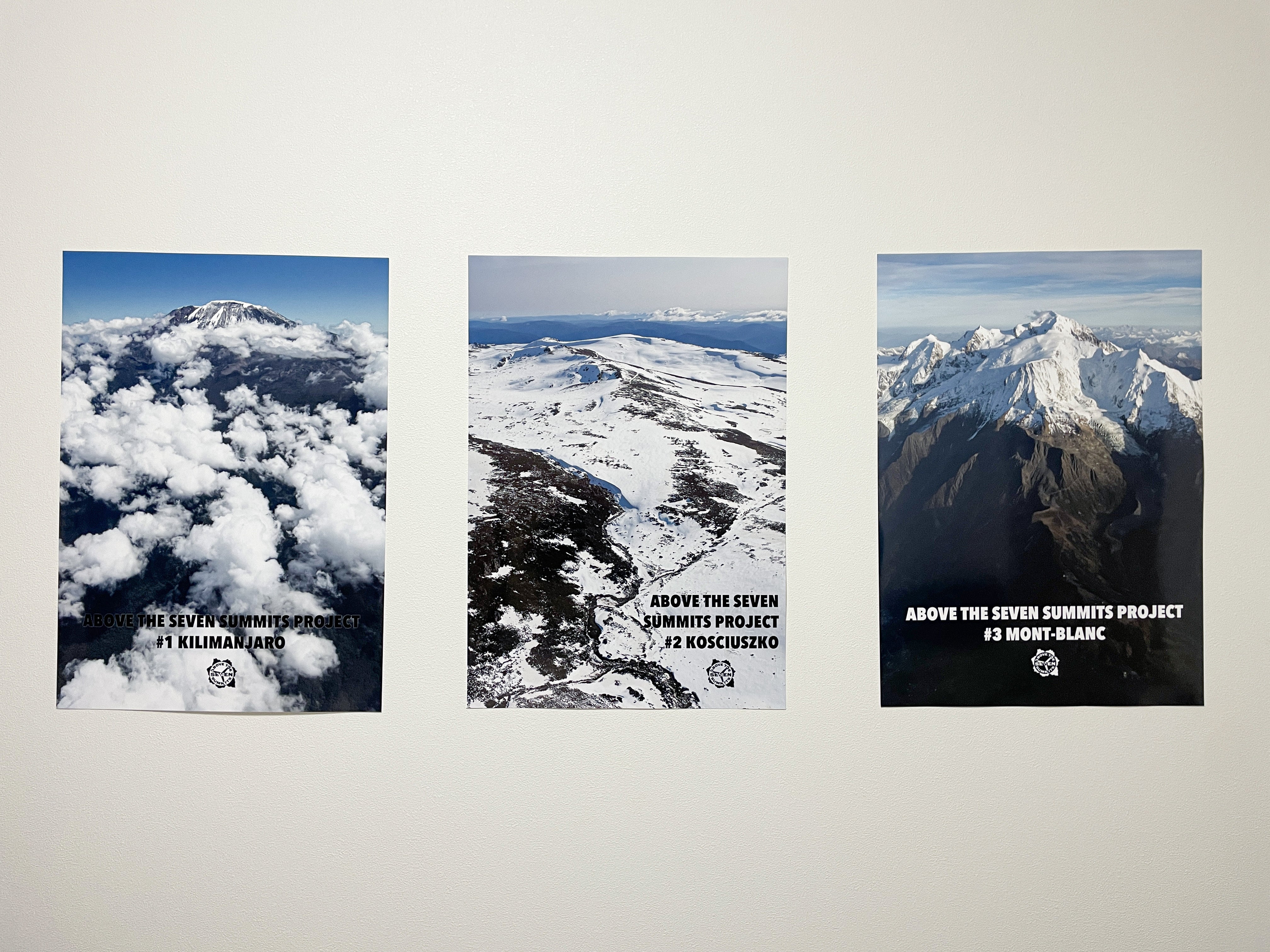 これまでに七大陸最高峰空撮プロジェクトで空撮した三つの山の写真のA2サイズポスター。