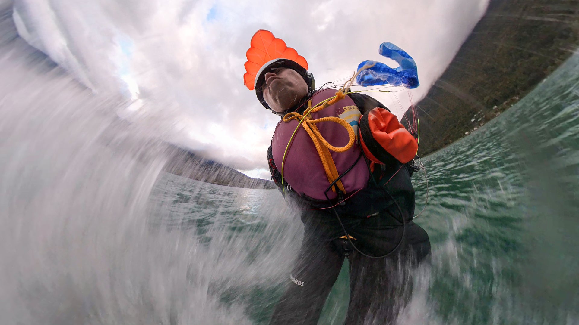 緊急パラシュートを開いたのも初めてだし、水の上に着水するのも初めてです。