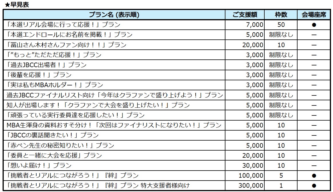 本大会とより一体になって応援していただけるようなリターンをご用意いたしました。