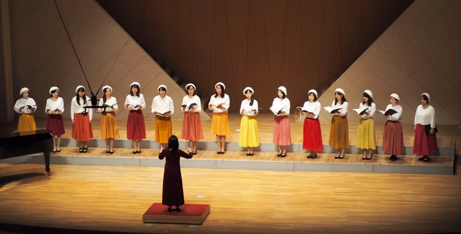 宇都宮中央女子高等学校合唱部時代には、La Fontaine... の歴代メンバーが全日本合唱コンクール全国大会で活躍し、2017~2019年には3年連続金賞を受賞しました。コンクールでは、「佐々木幹朗の詩による3つの無伴奏女声合唱曲<鎮魂歌-明日-風のなかの挨拶>」より、「鎮魂歌」・「風のなかの挨拶」や、「無伴奏女声合唱組曲<逝く夏の歌>」より「幻影」・「逝く夏の歌」といった、西村朗先生の委嘱作品に挑んできました。また、La Fontaine... が宇都宮中央女子高等学校合唱部の現役生と合同で制作した、西村朗女声合唱作品集CD「逝く夏の歌」は、全日本合唱連盟の季刊誌である「ハーモニー」で2021年7月に特選に選出されました。私たちは、これらの機会を通して西村先生の作品を演奏するたびに、力強さや、繊細な心情、辛く思い現実の中に光る僅かな希望などの、楽曲の魅力に惹きこまれていきました。