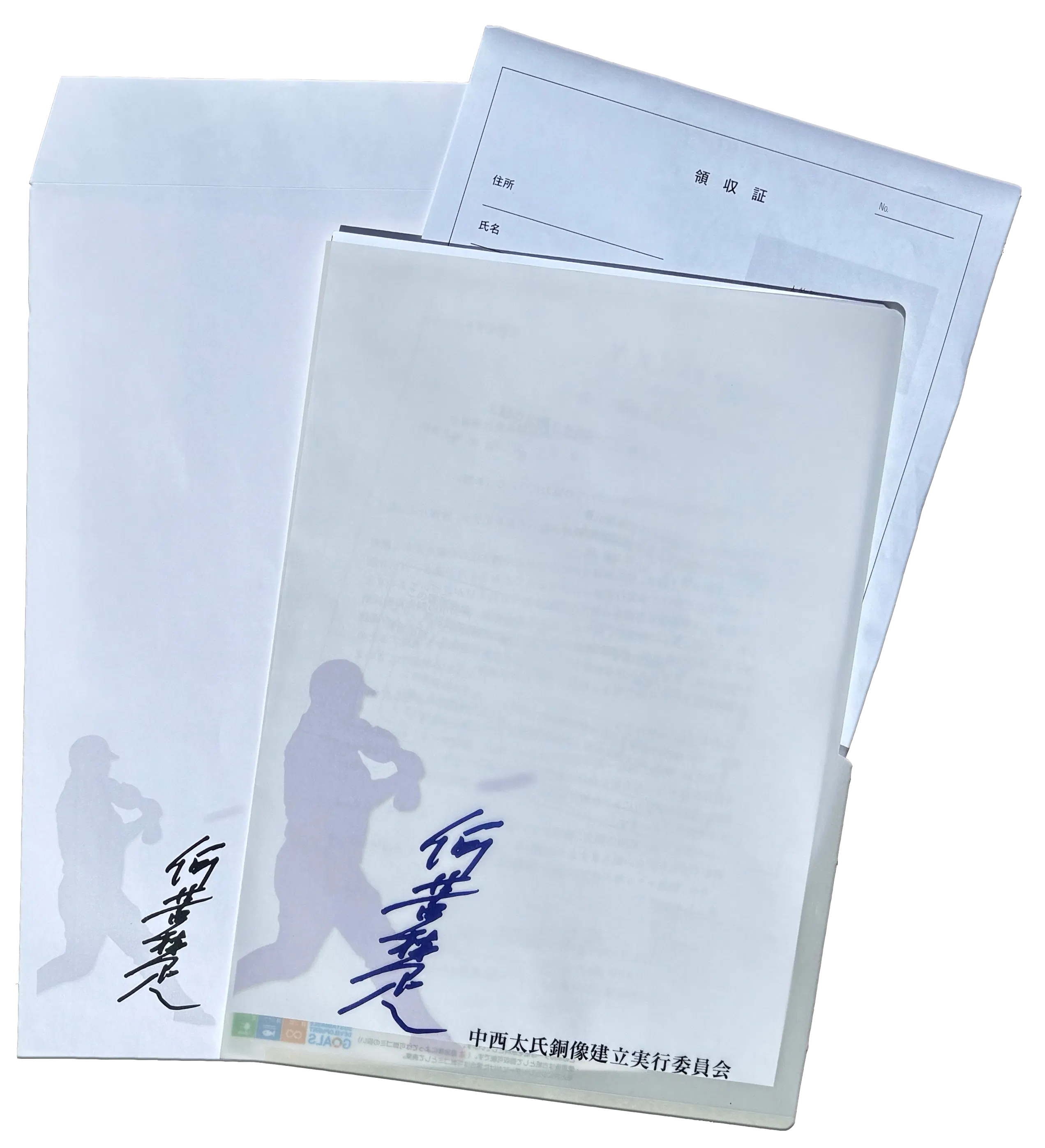 ・大切な寄附金に対する領収証を送付する特製クリアファイルと当実行委員会の封筒は下図のようなイメージです。(※デザイン等変更になる可能性があります。)