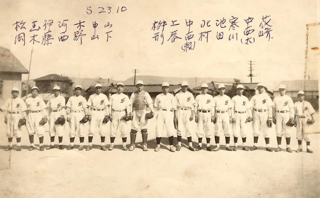 昭和24年春、選抜高校野球大会に出場、まだ高校に入学していなかったが中西太氏は出場が認められた。この大会では1回戦で関西(岡山)に勝利したが、2回戦で名投手福嶋を擁する小倉(福岡)に敗れる。