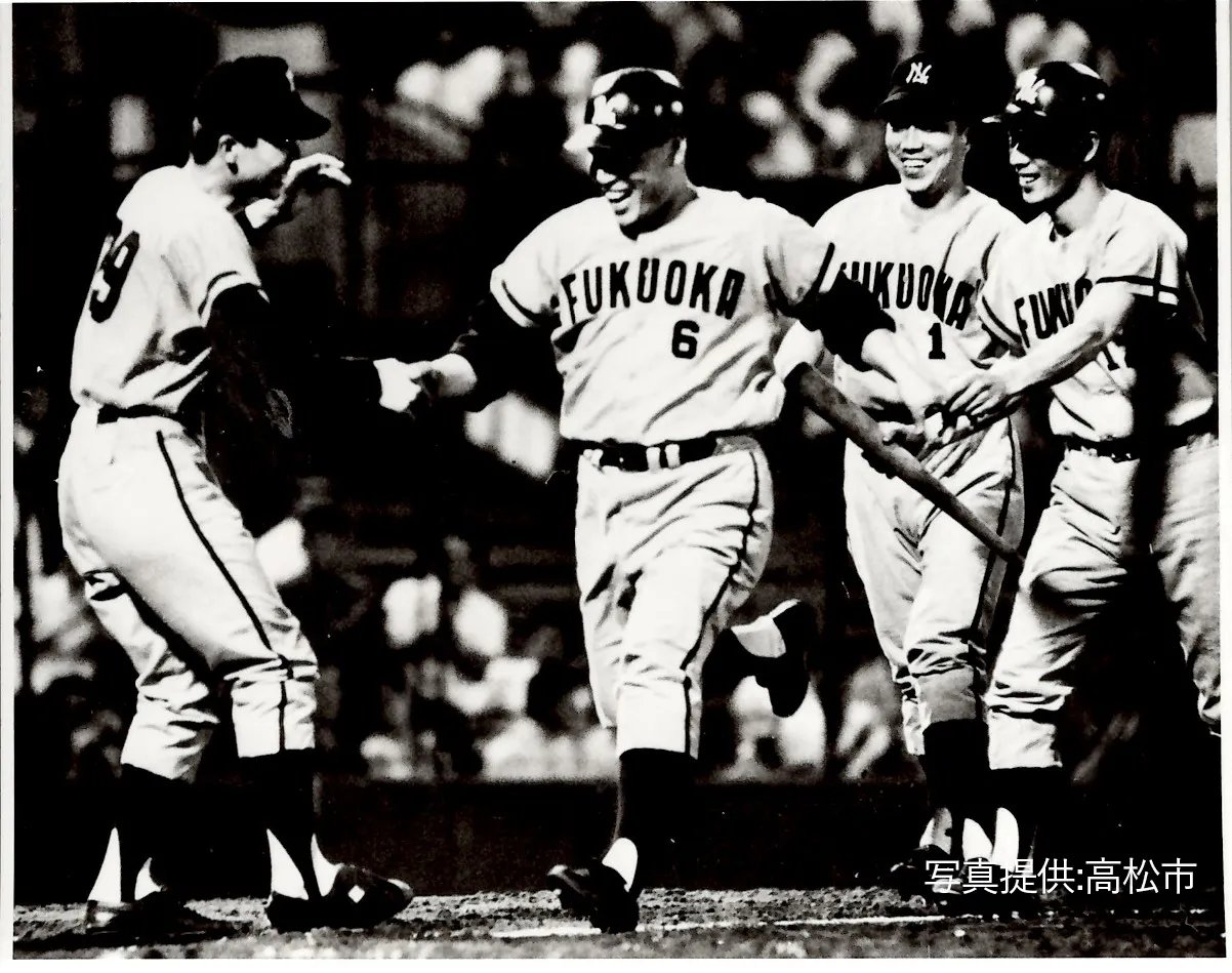 中西太氏は高松一高時代に春夏合わせて3度甲子園に出場し、「怪童・中西太」として全国にその名を轟かせました。高校卒業後は西鉄ライオンズに入団し、本塁打王5回、打点王3回、首位打者2回など、数多くのタイトルを獲得しました。また、西鉄ライオンズをはじめ、日本ハムファイターズや阪神タイガースで監督を務めたほか、多くの球団でコーチを務め、現阪神タイガースの岡田彰布監督やWBC侍ジャパン前監督の栗山英樹氏、元メジャーリーガーのイチロー氏や岩村明憲氏など、数多くの選手を育てた指導者でもありました。その功績から、平成11年には野球殿堂入り、平成12年には高松市市民栄誉賞第1号が授与されました。