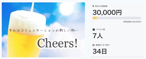 開始してわずかながら10%のご支援をいただくことができました!