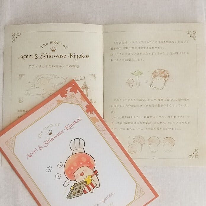 昨年8月にお話しの一部を絵本にした「しあわせキノコ森へいく!」を製作し、可愛いクッキーと一緒に名古屋の絵本フェスにて販売し、お客様には読みながら楽しく食べてもらう事でたのしんでもらいました
