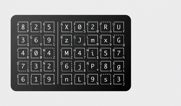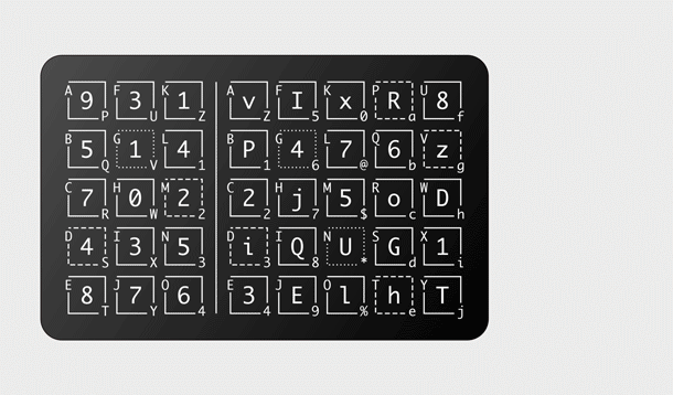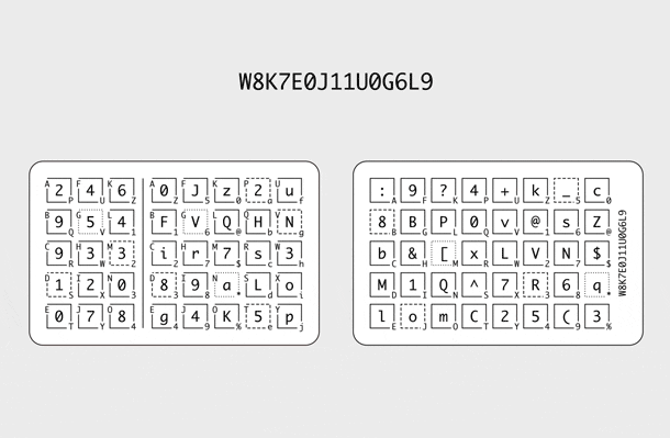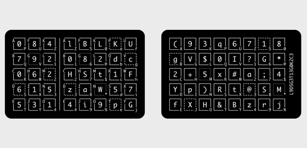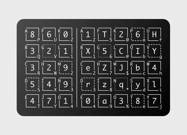 表と裏で異なる組み合わせの英数字が印字されており、どちらでもパスワードの生成が可能です。