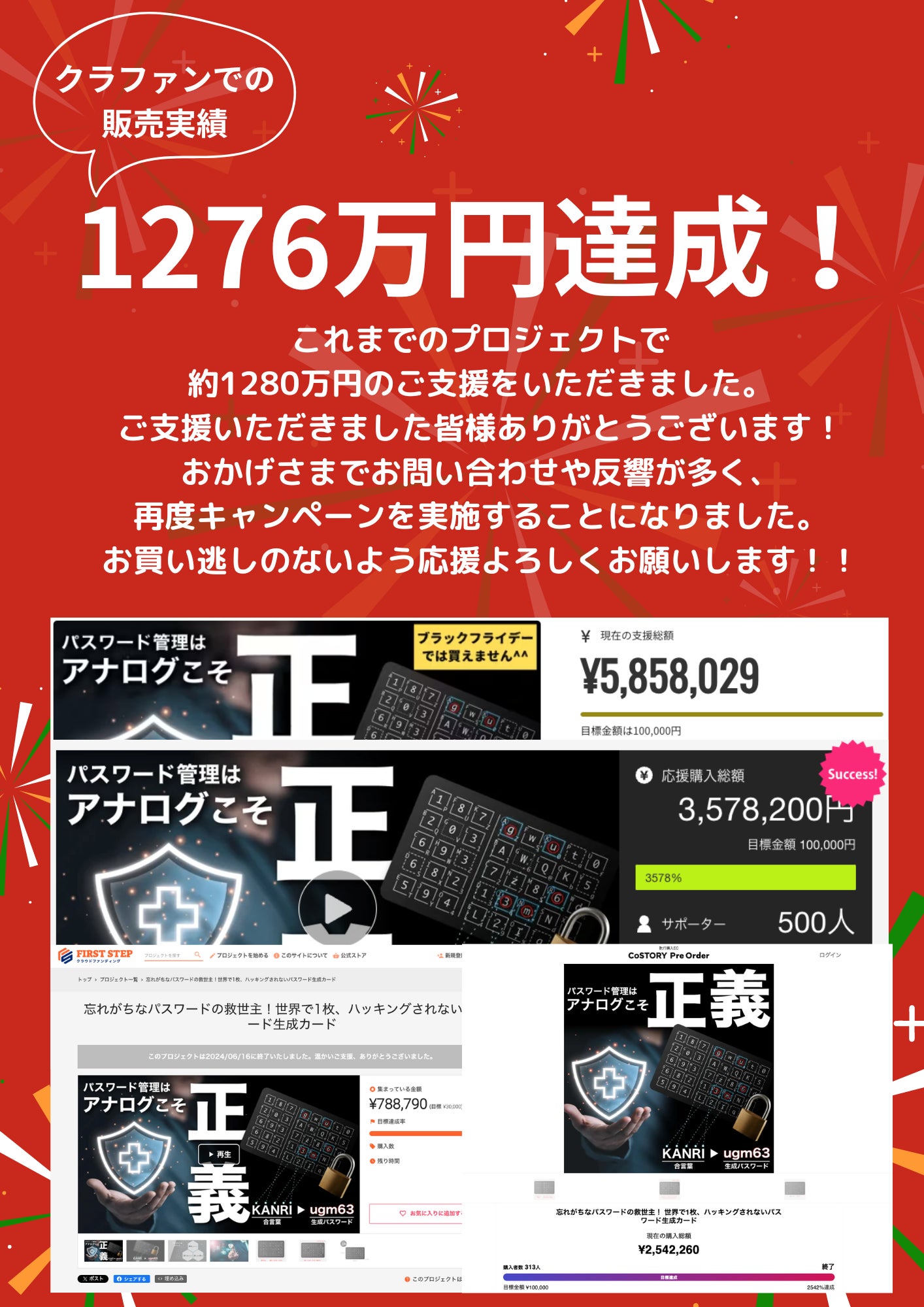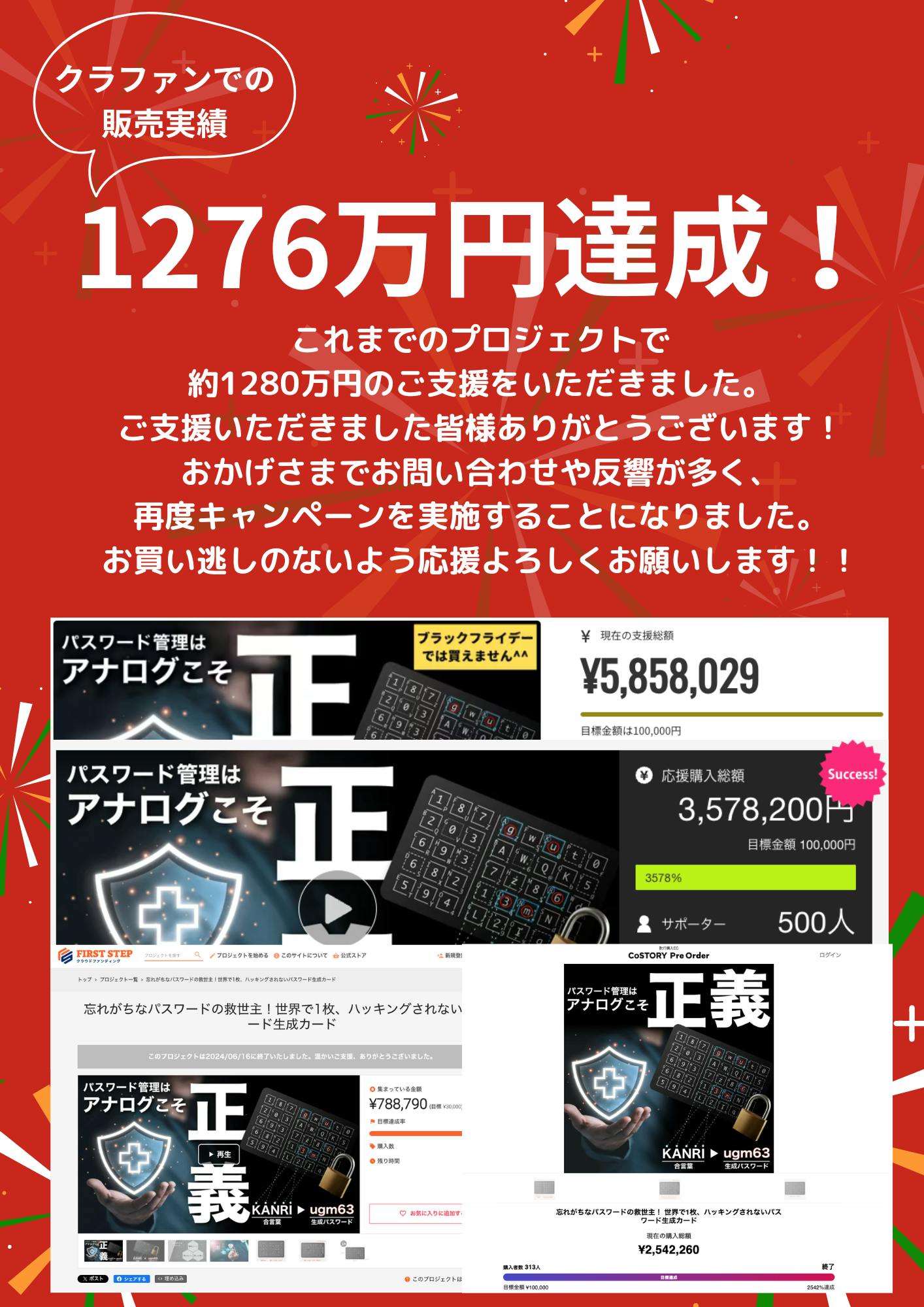 1枚のPassCardから無限のパスワードの組み合わせを生成できます。
