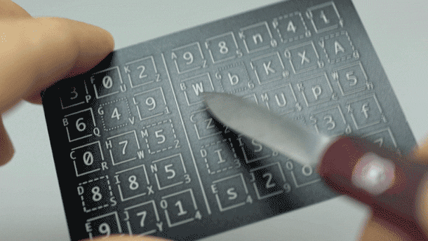 A:ユーザーは、この金属カードのグラフィックから簡単に4通りの方法で強力なパスワードを生成できます。PassCardの推奨される使用方法については、上記で詳しく記しています。また、カードには電子部品が含まれていないため、ハッキングされることはありません。