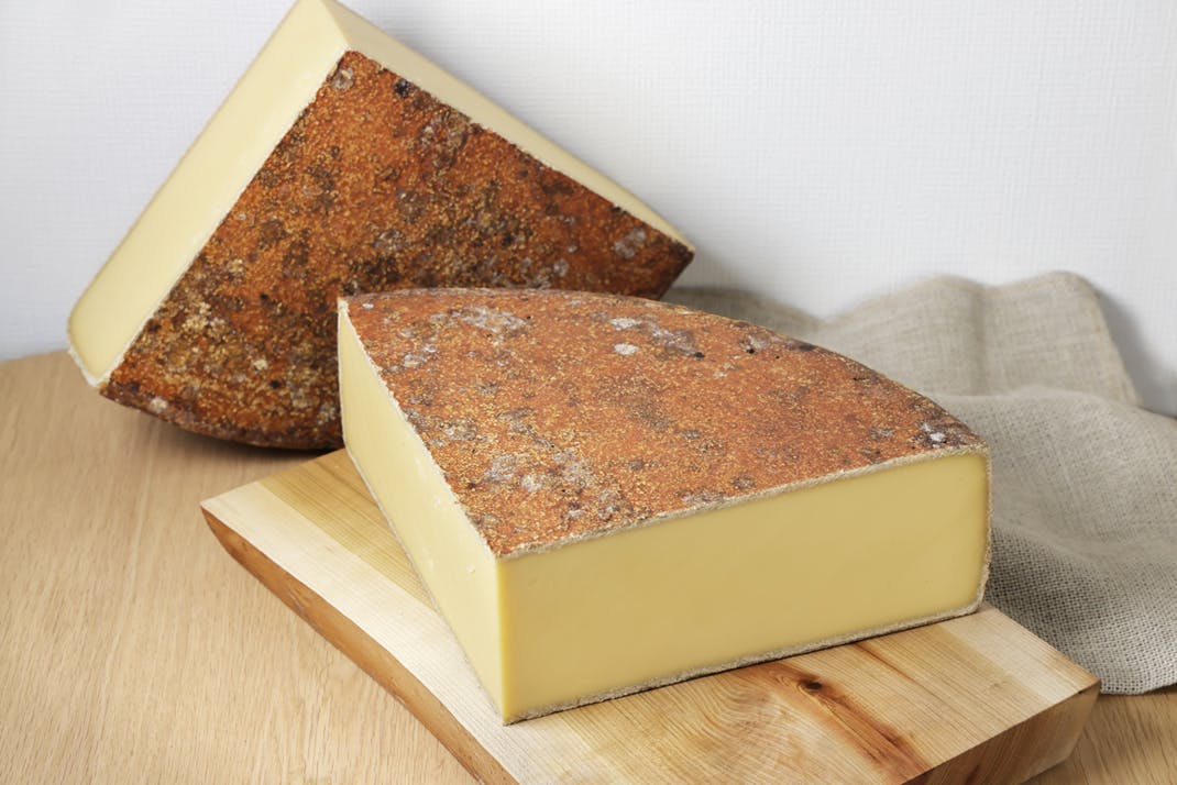 5~11月の放牧期間中のミルクで製造する長期熟成のチーズ。熟成中に状態がよい幸を選び、18か月以上熟成しました。凝縮された深い旨味、焙煎したナッツや栗、コーヒーのような香ばしさが感じられます。