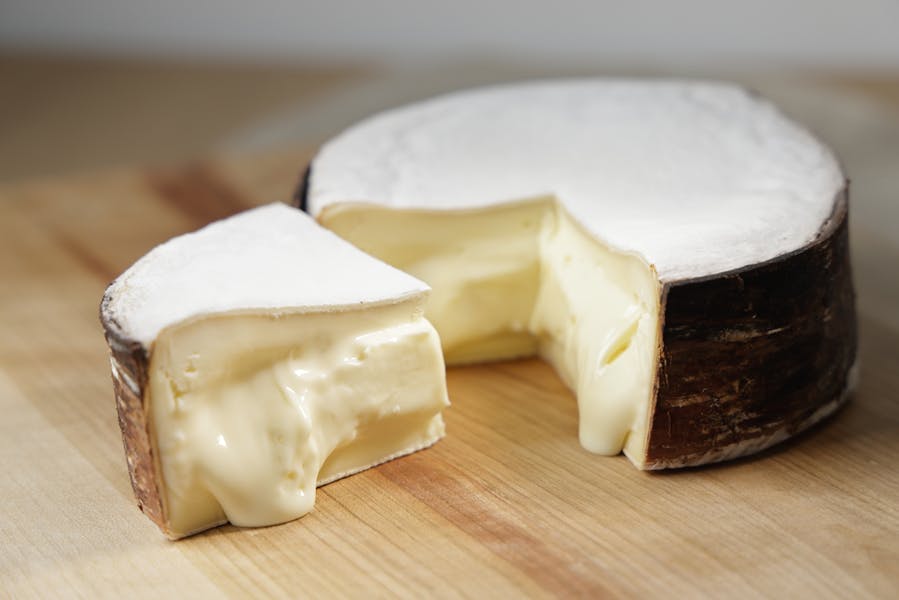 北海道大学の協力のもと、北海道甘塩町にある甘塩研究林でひとつひとつ手作業で作られたサングレ(樹皮)を使用しています。もっちりとした柔らかさとやさしいミルクの甘みに、しっかり香るエゾヤマザクラの香りが特徴のチーズです。熟成が進むと、とろけるカスタードクリームのような柔らかさになり、旨みと香りが増し、味わいも濃厚になります。