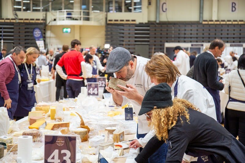 前回大会では日本を含む45ヵ国から4500品を超えるチーズが集まりました。