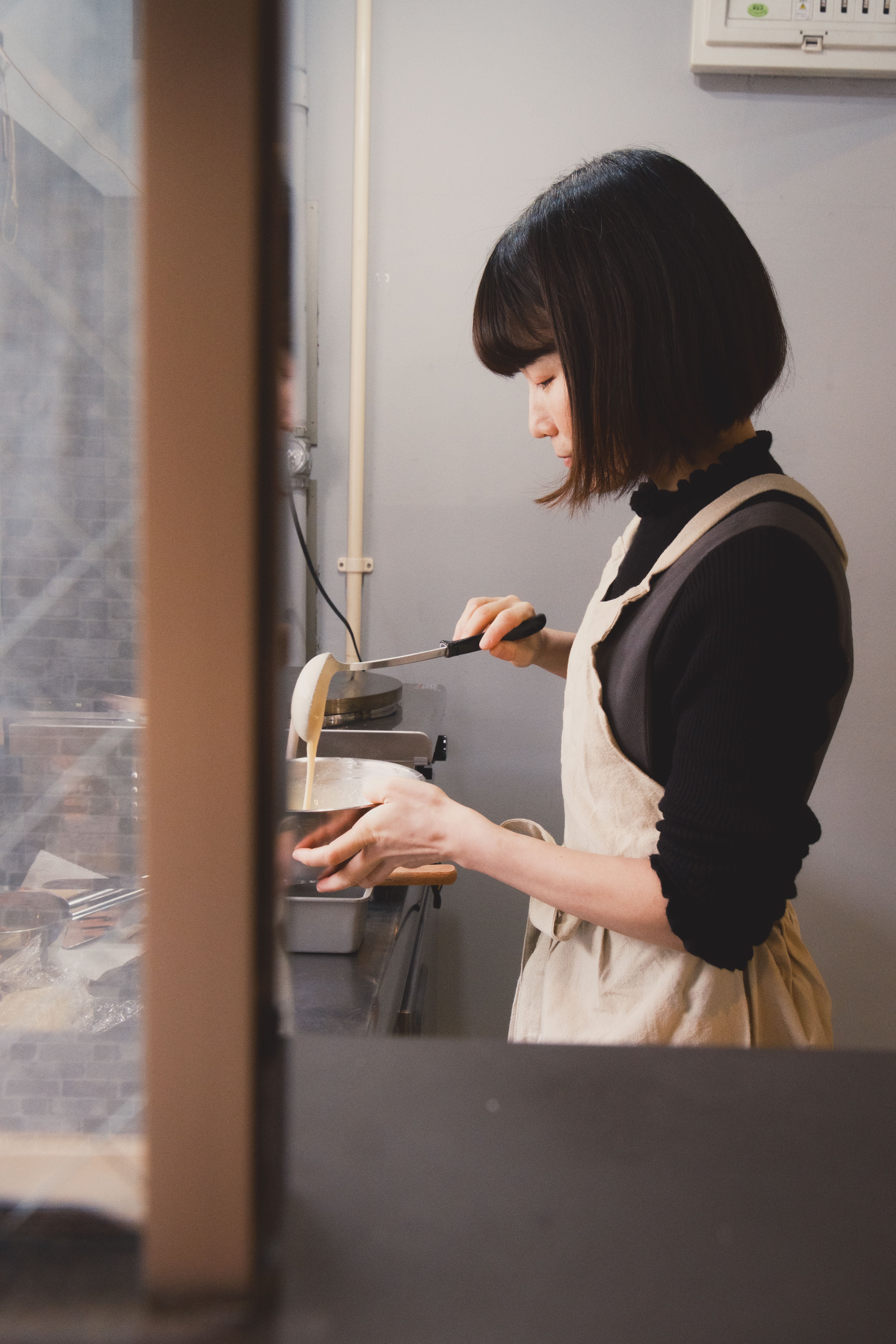 クレープの試作を何度も重ねました
