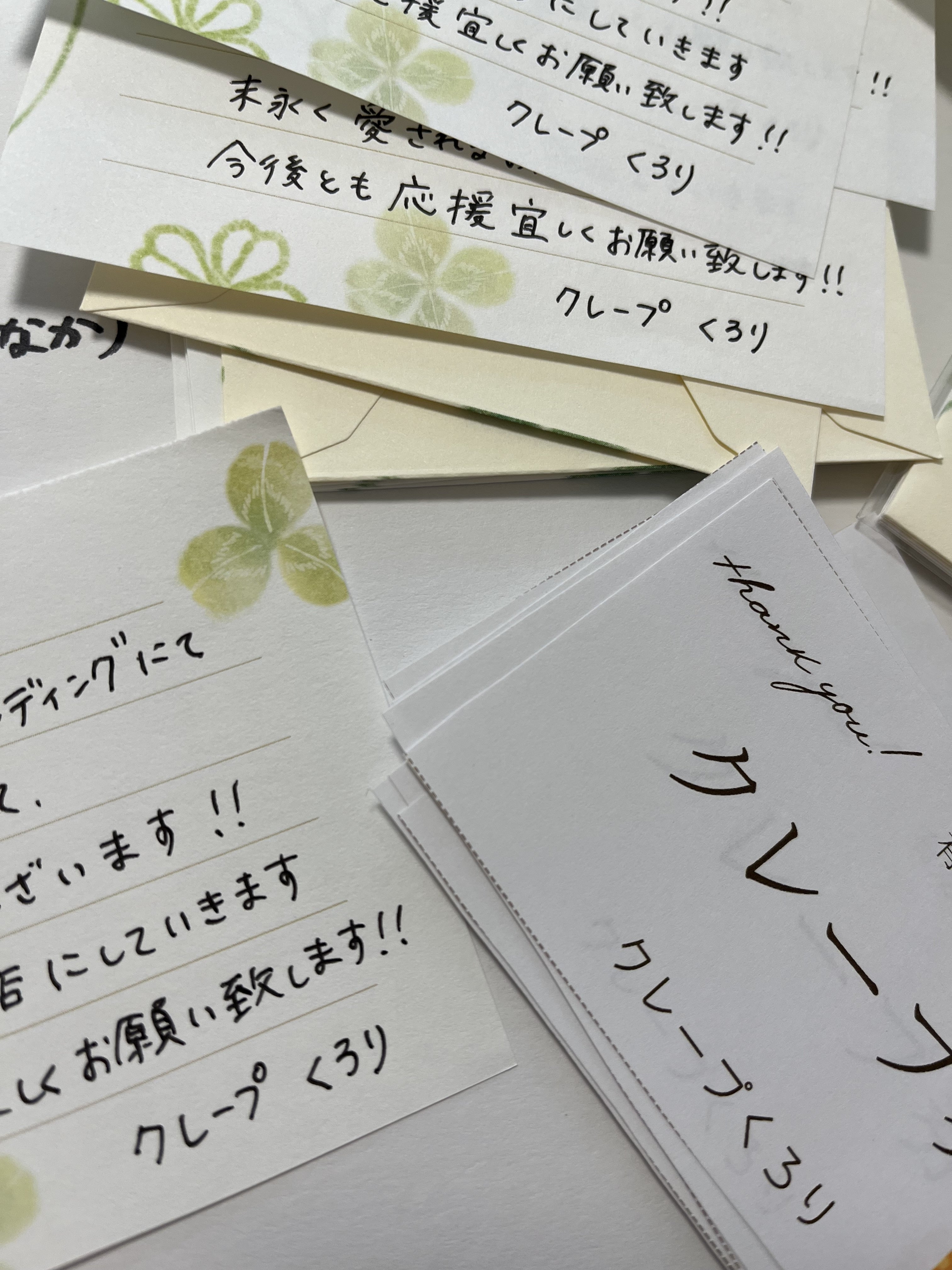 クラウドファンディングのリターンであるクレープ引換券を作りましたー!!こんなにたくさんクレープを作る予定があるんだなぁと、幸せと責任を感じております。皆様の笑顔が早く見たいです♪