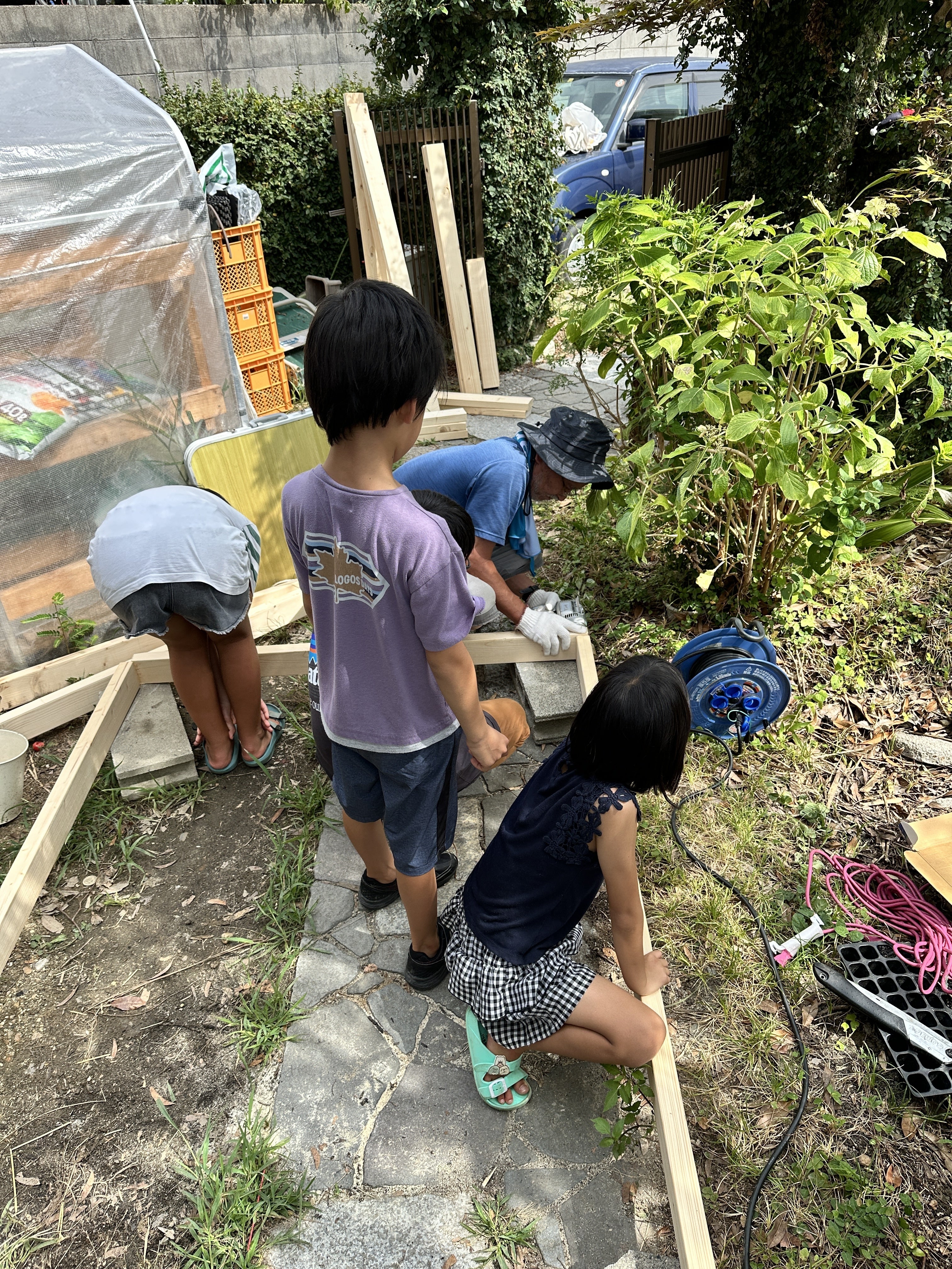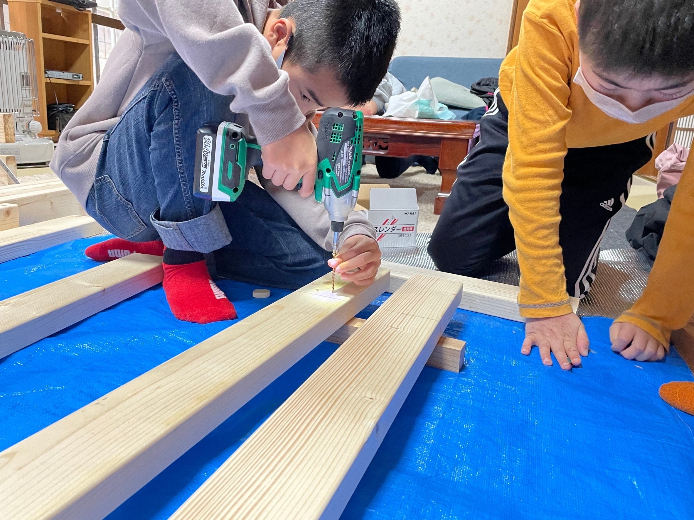 ポルンチに来た不登校の子ども達と近所のおじいちゃんでDIY体験!