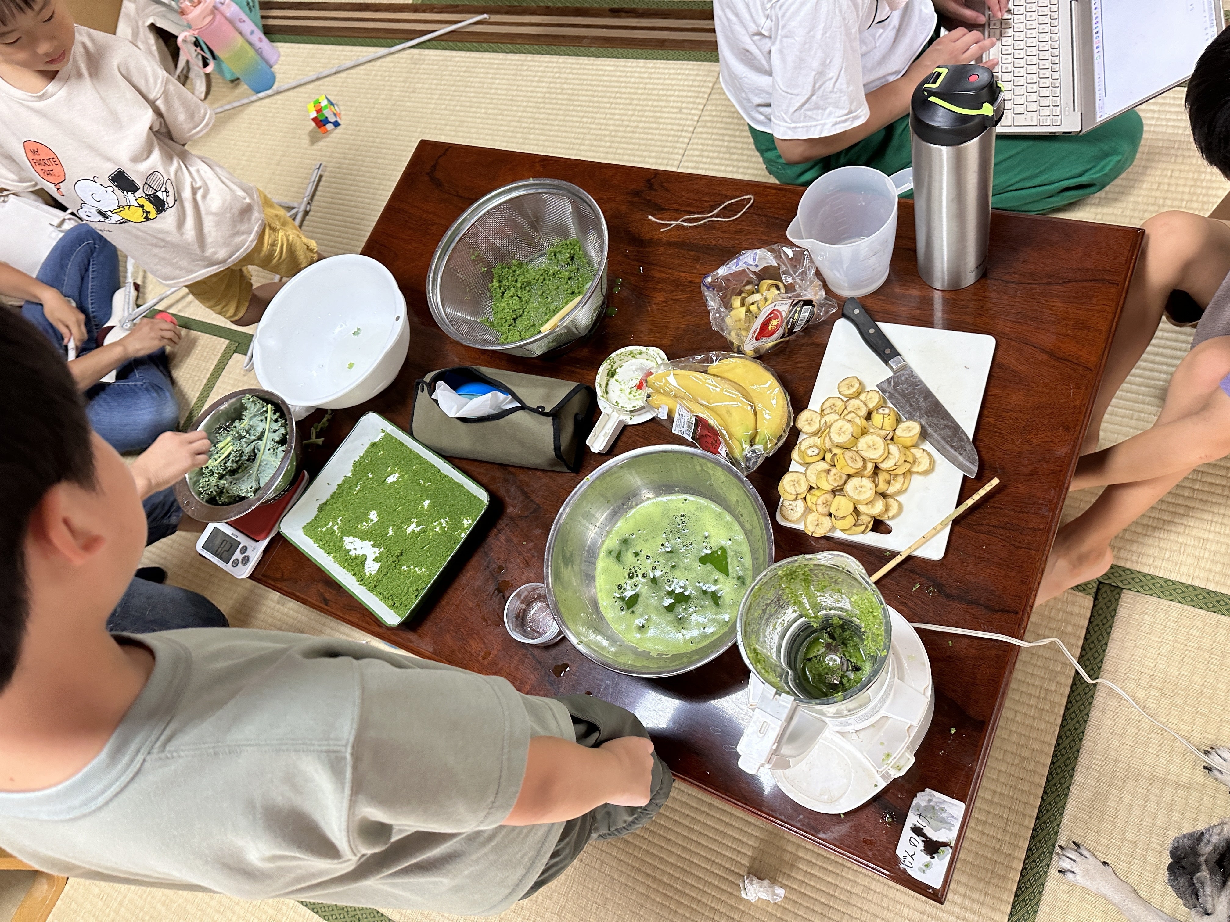 そのまま飲むとかなり不味いケールですが、蜂蜜バナナや蜂蜜レモンなど、子ども達と配合を試作し飲みやすくしています。