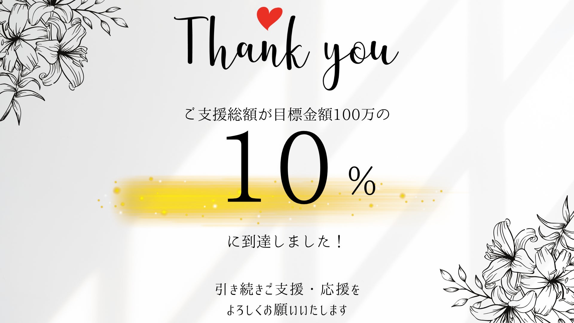 【目標金額の10%を達成】皆さまのご支援に心より感謝申し上げます。