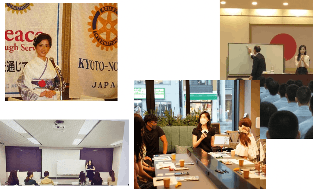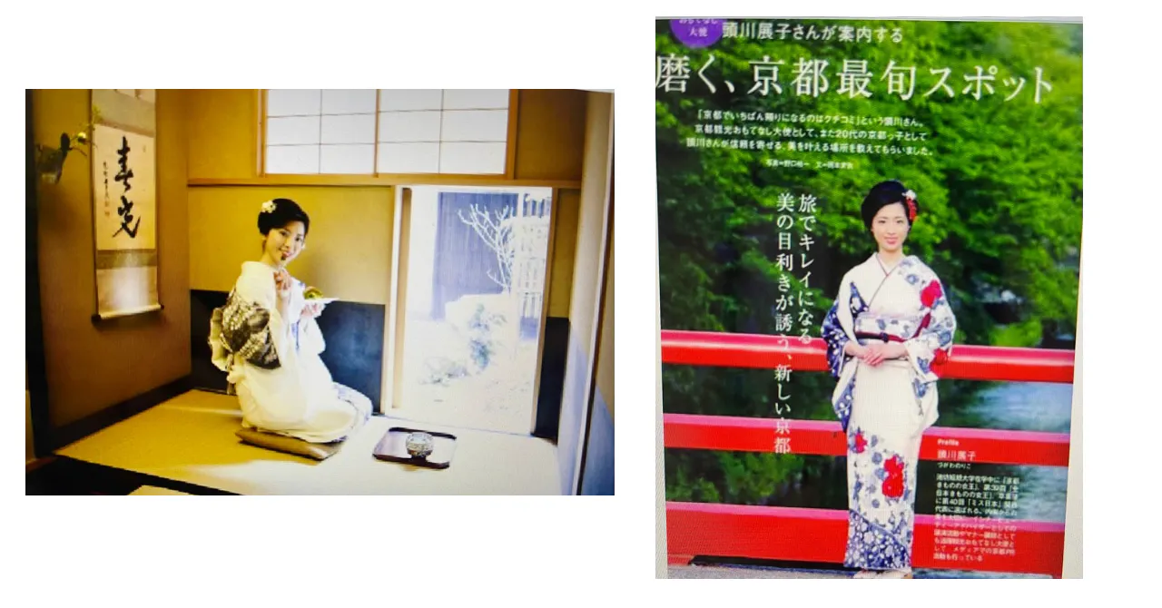 25ansビューティーメダリスト、京都観光サポーターとしてテレビやメディアで和装文化や京都をPRしたり、日本茶インストラクター認定の「日本茶アドバイザー」を取得し日本茶普及にも力をいれている。