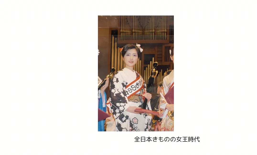 池坊短期大学在学中に「京都きものの女王」、第39回「全日本きものの女王」に。