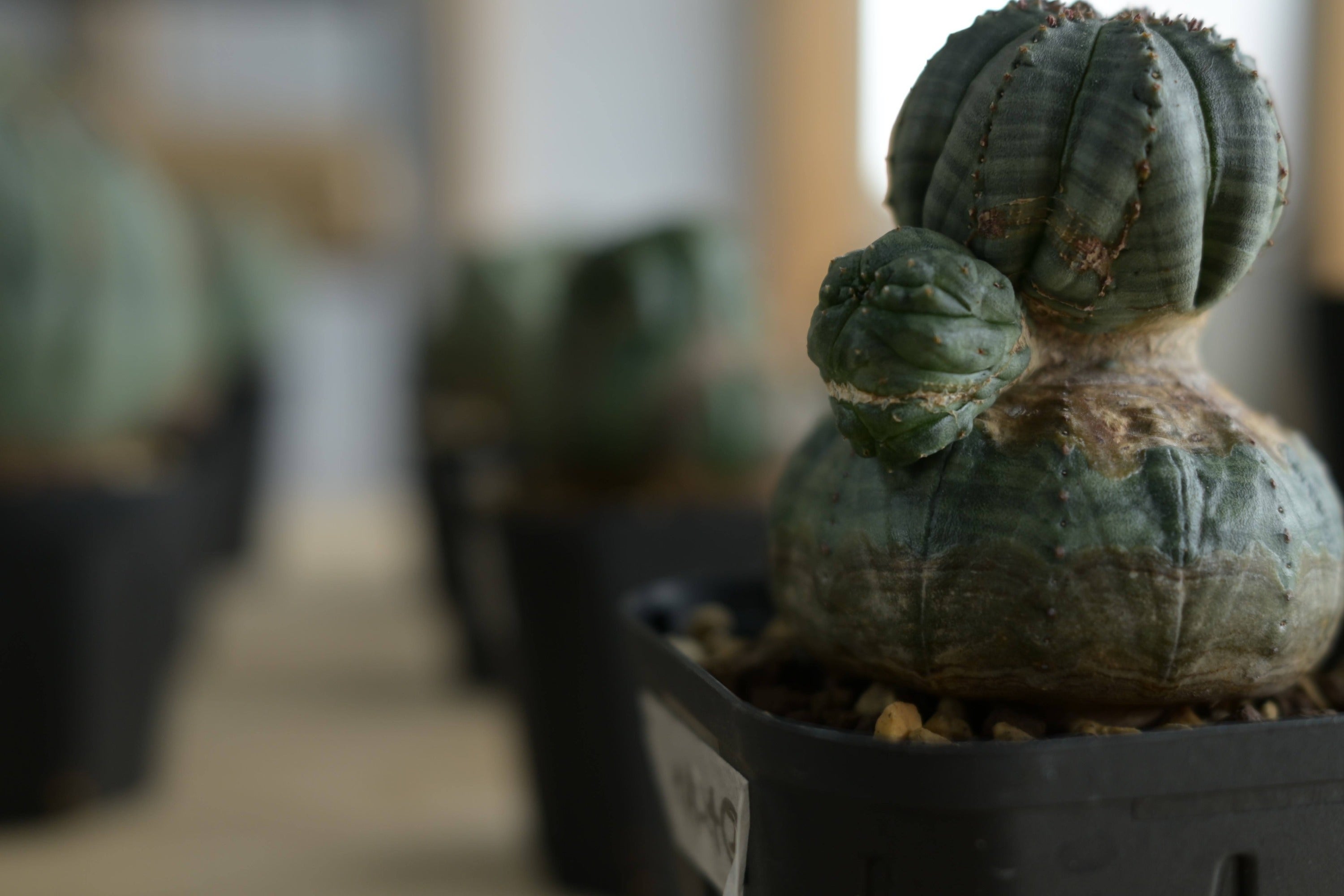 ユーフォルビア属に属するオベサ。ユーフォルビア属は2000種類以上ある属で多年草、多肉、低木など様々な見た目をした植物たちがいます。