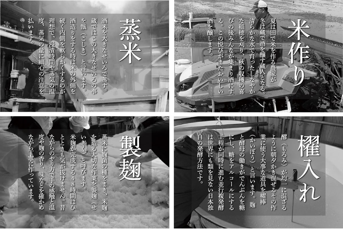 機械化が進むこの時代にあえて昔ながらの道具を大切に使い、過酷な作業で仕込む酒は酒蔵の歴史に対する思い入れや、造りに向き合う熱い情熱、道具に対する愛情を注いでいます。